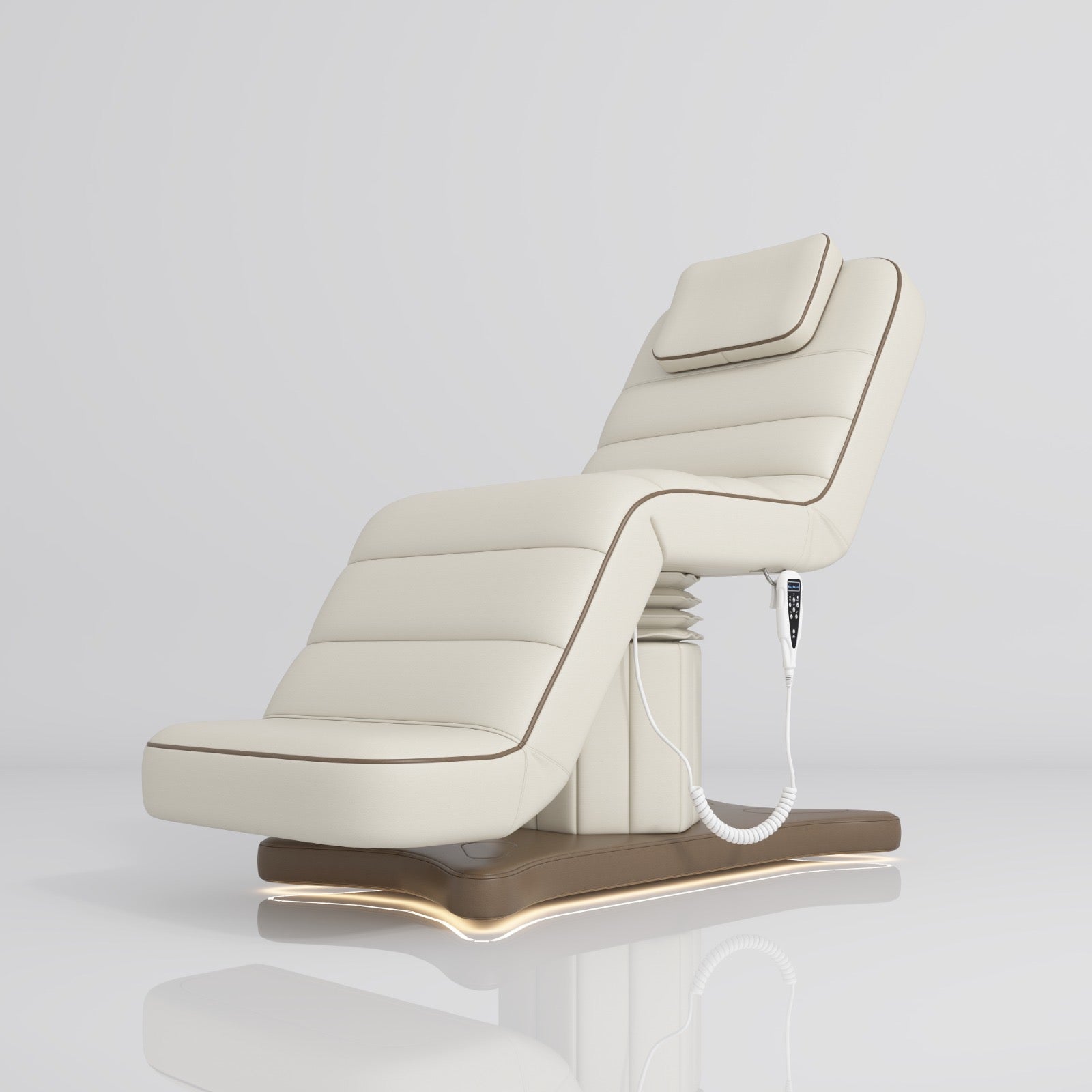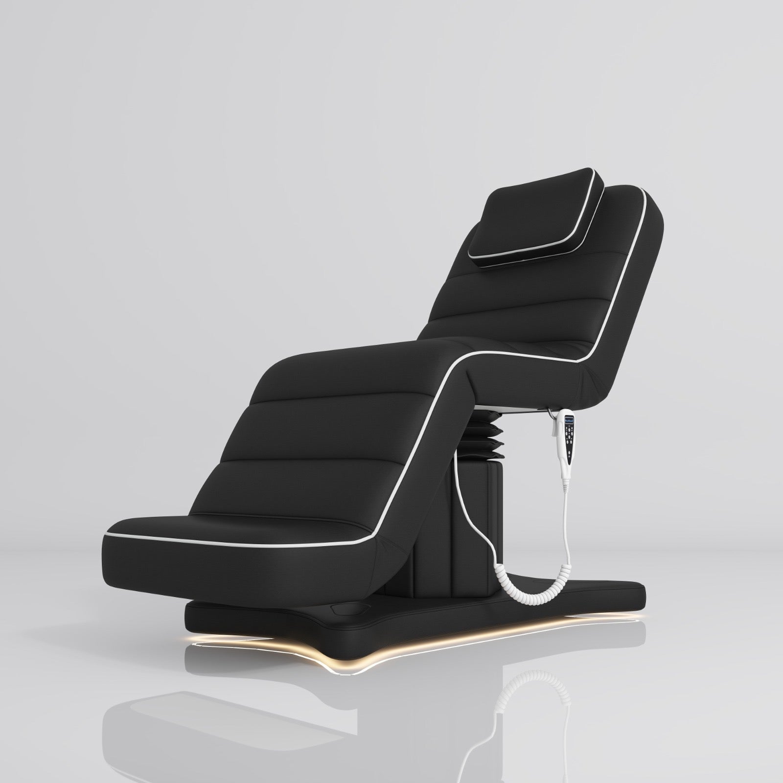 The Valentina Beauty Bed features coloured piping, built-in LED lighting and luxurious silicone leather that adds warmth and sophistication to any treatment room.
