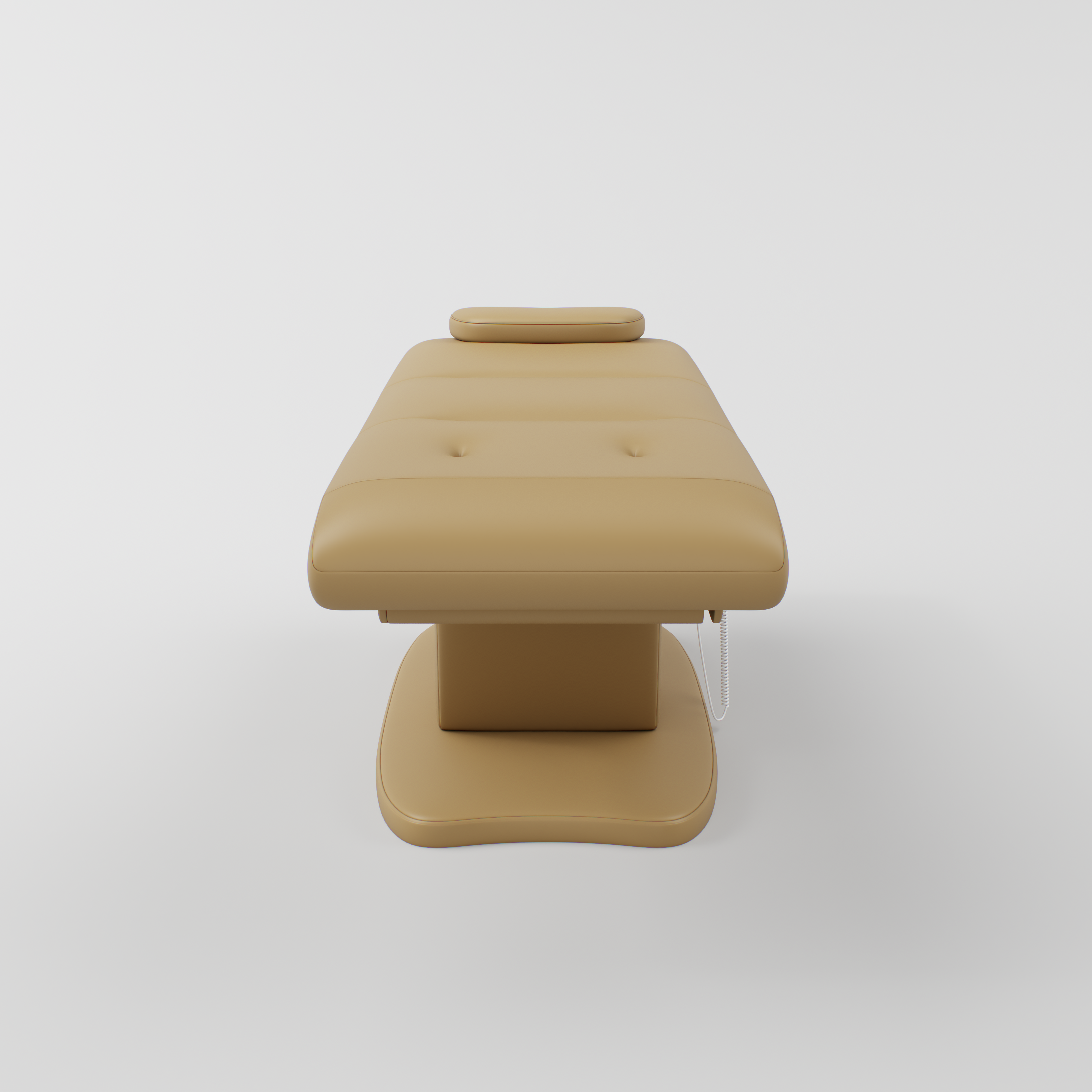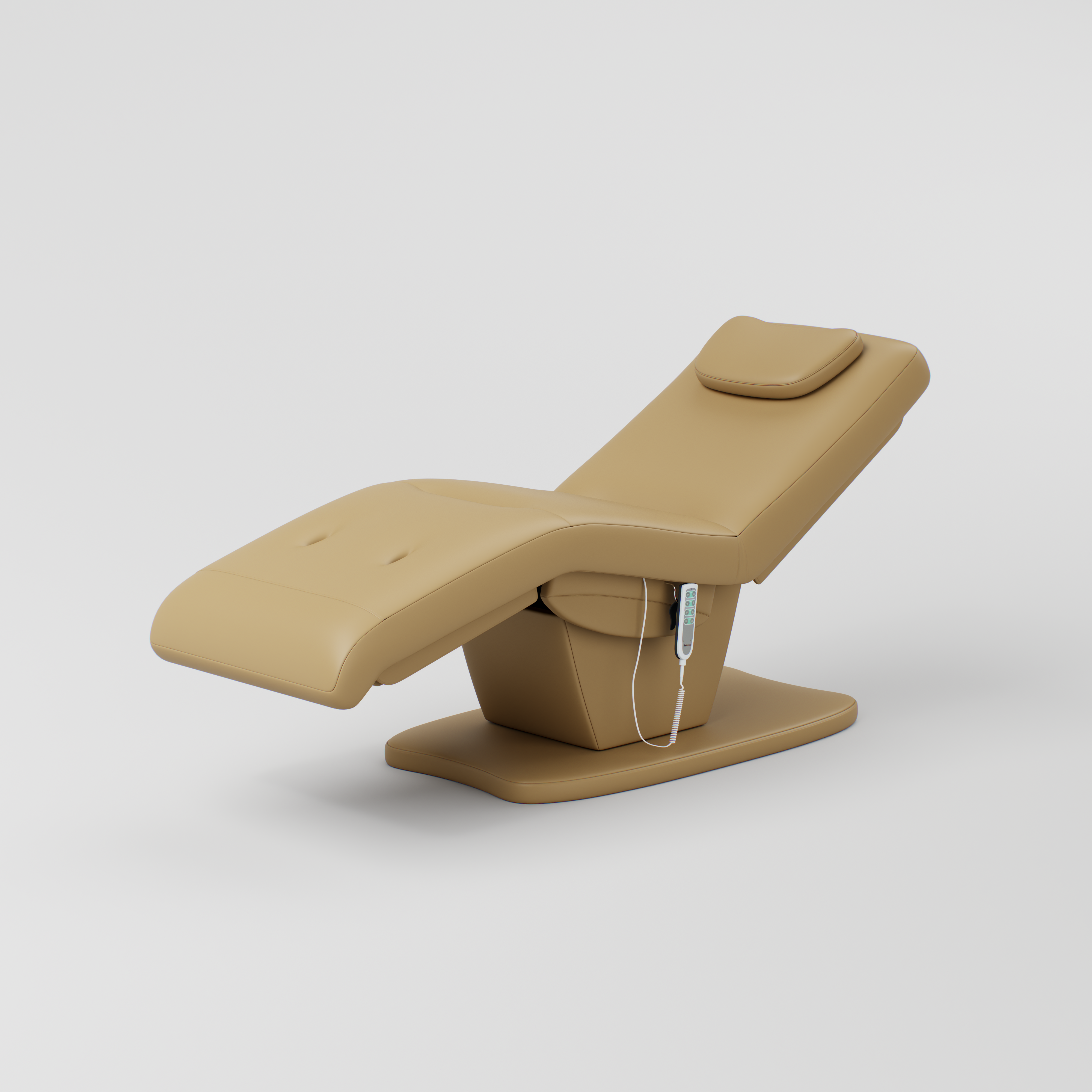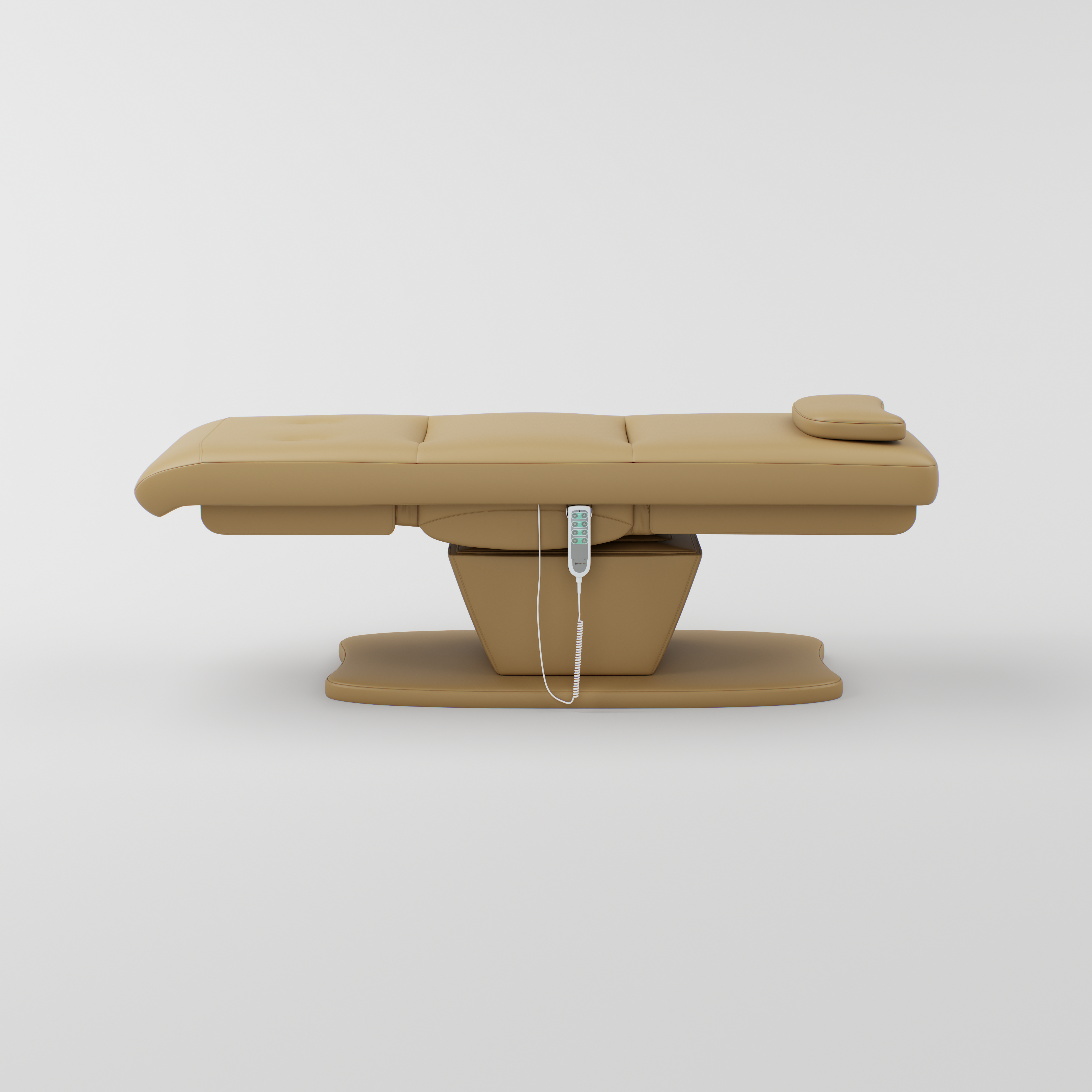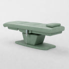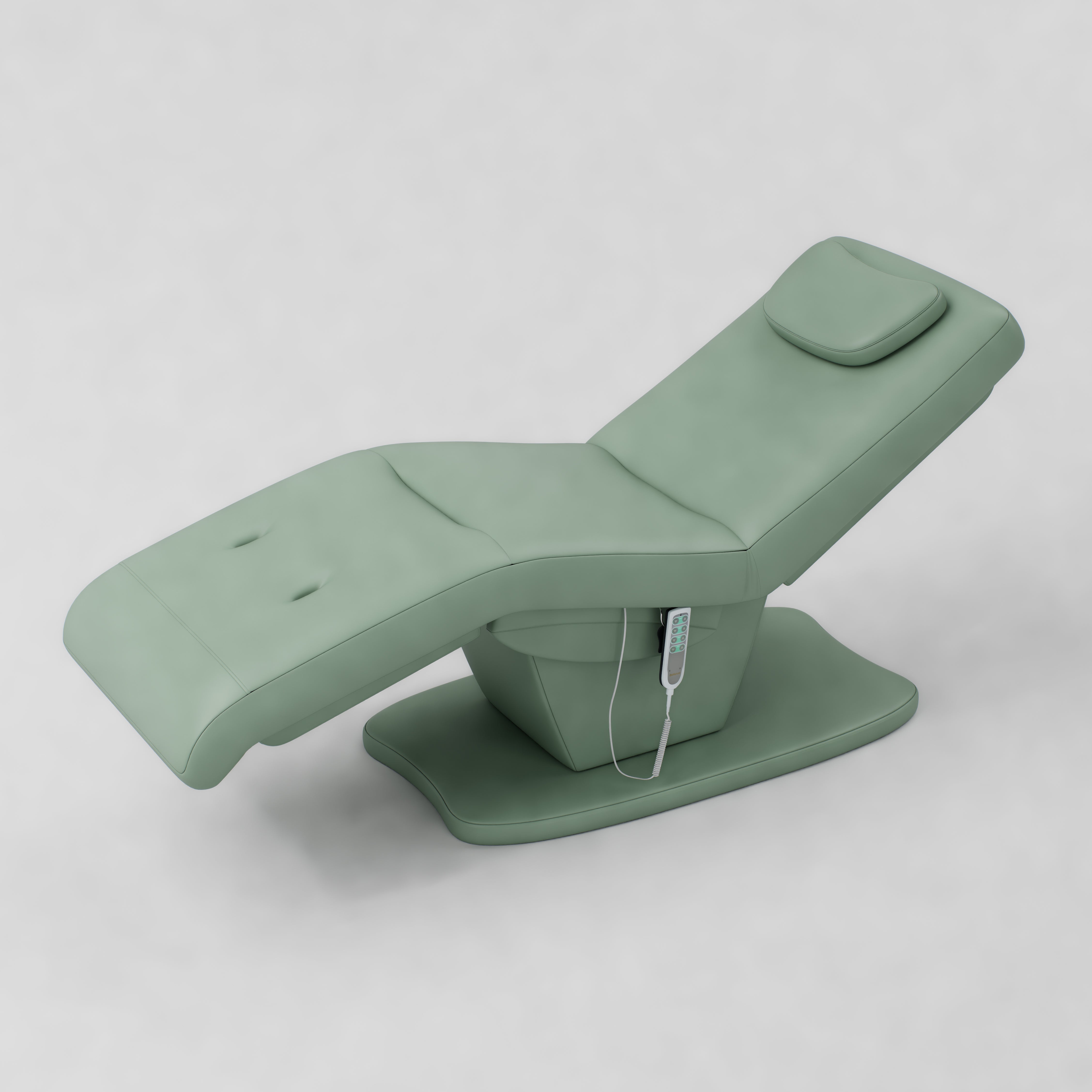The Paloma is an electric beauty bed designed for comfort and easy adjustment. It features vegan stain-resistant leather and an ergonomic shape for client support. The bed includes a standard power plug, four motors, and an electric remote control for smooth adjustment. Height, backrest, footrest and bed tilt can all be adjusted electrically, and it comes with a head pillow included which can be removed to reveal the face hole.