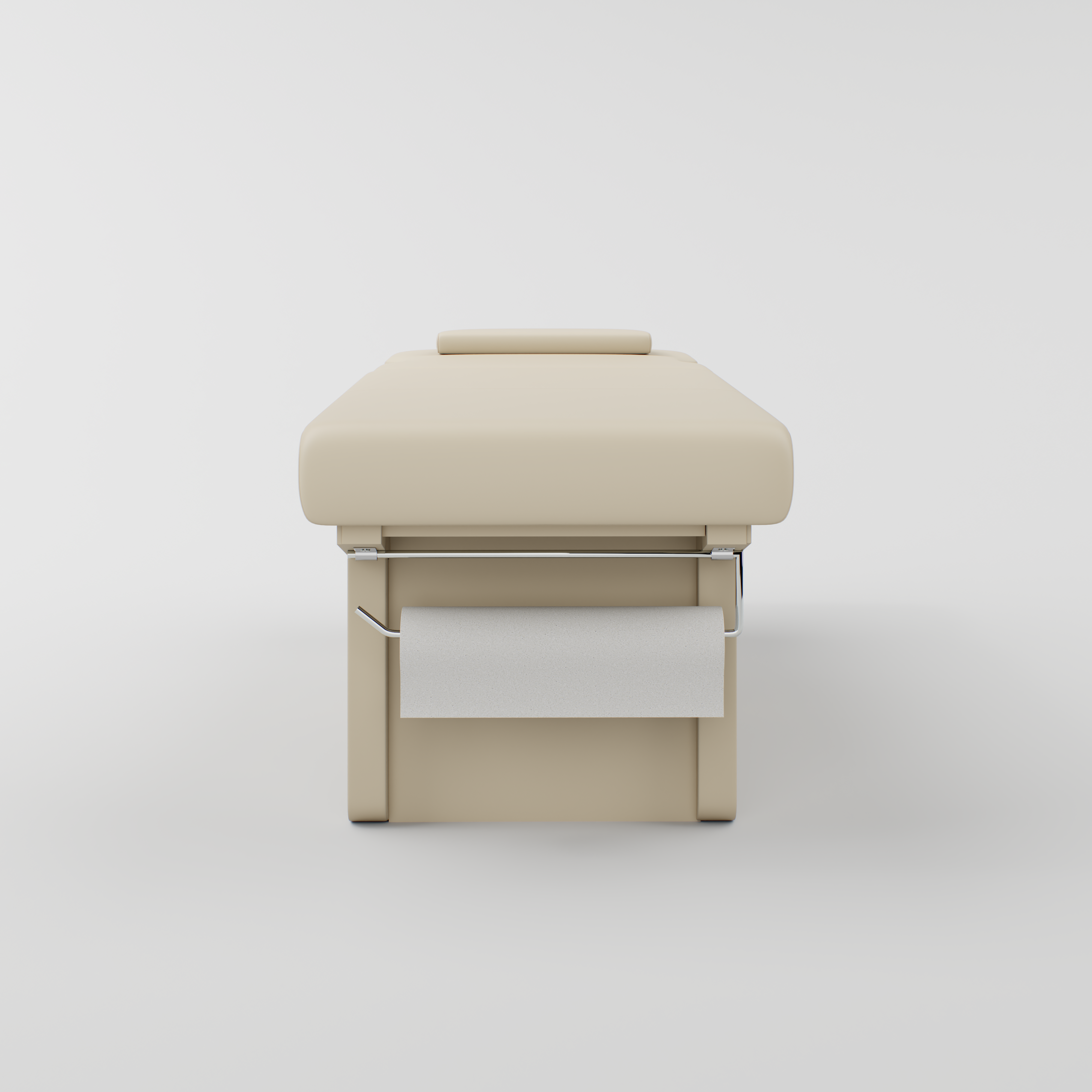 The sturdy structure is reinforced with stainless steel and finished with a stoving varnish coating, ensuring long-lasting strength and a flawless, matte appearance. For added convenience, the base includes integrated lockers that provide discreet storage for towels, tools, and treatment essentials, keeping your workspace clean and organised.